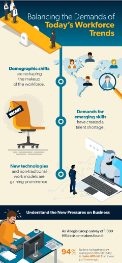 Get insight on the issues facing employers today, through the perspective of 1,000 HR leaders. From managing the multigenerational workforce, to the use of technology in talent acquisition, and the influence of automation on business success. It’s all here!